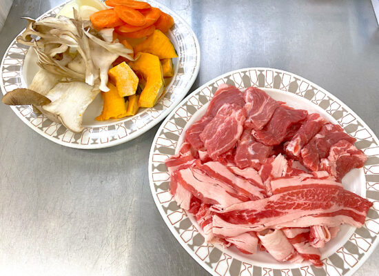 ●牛肉100g、豚肉100g、秩父野菜・秩父きのこ盛り合わせ