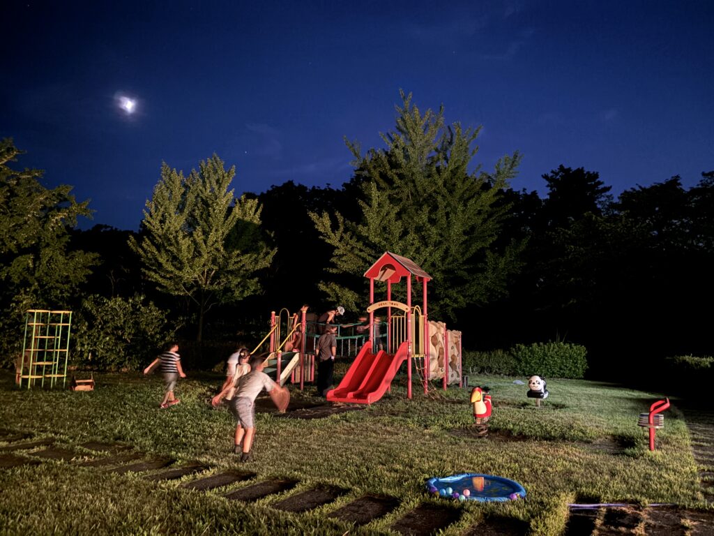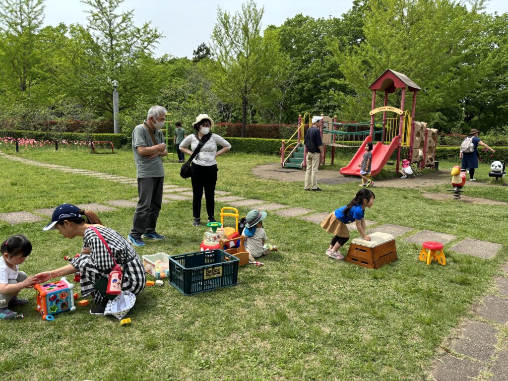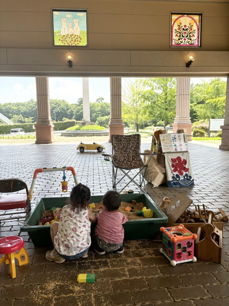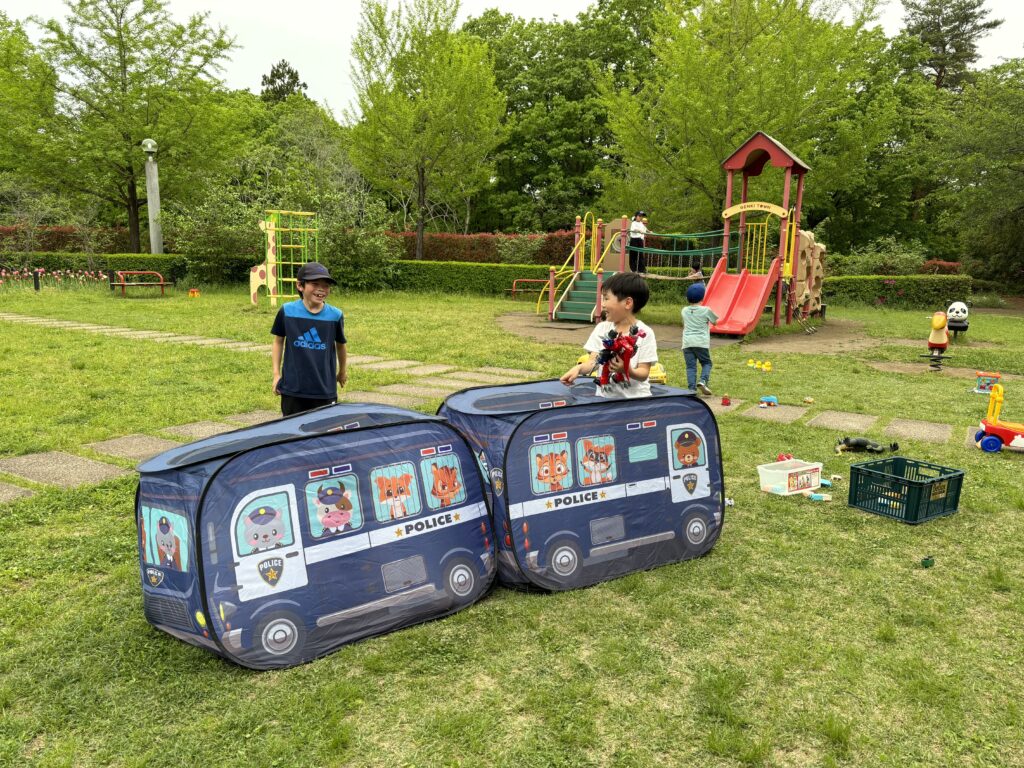 (芝生のおもちゃは天候によりステンドハウス内に移動しています)