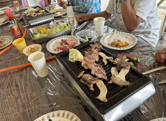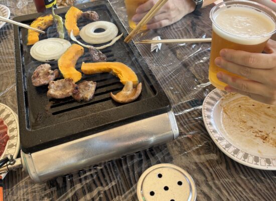 およそ200人が休憩できるほど大きいステンドハウス内で楽しむ手ぶらバーベキュー★