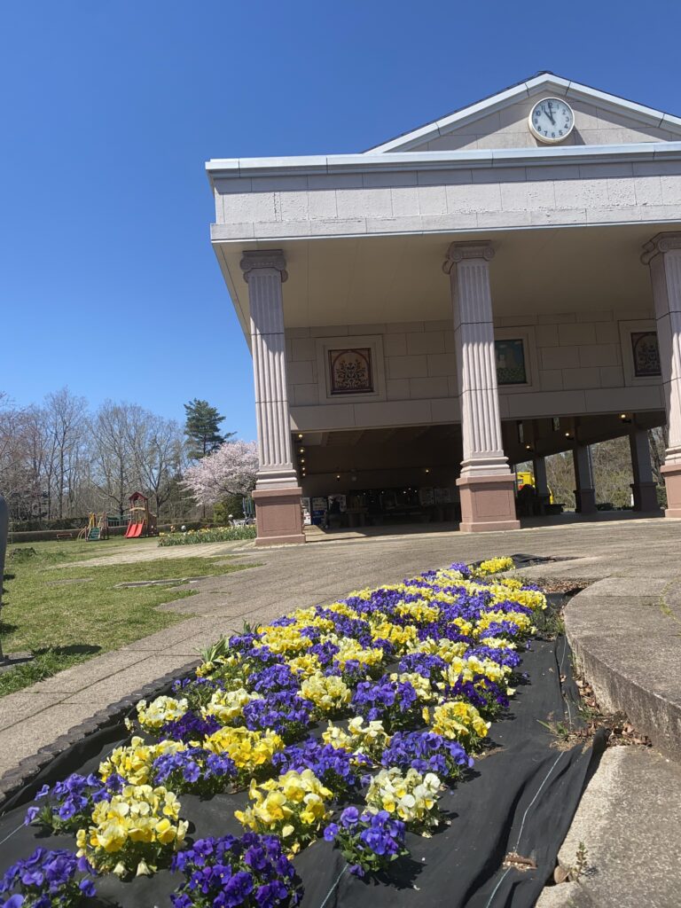 建物はギリシャ神殿をイメージして造られ、壁面にはステンドグラスが15枚取り付けられています。